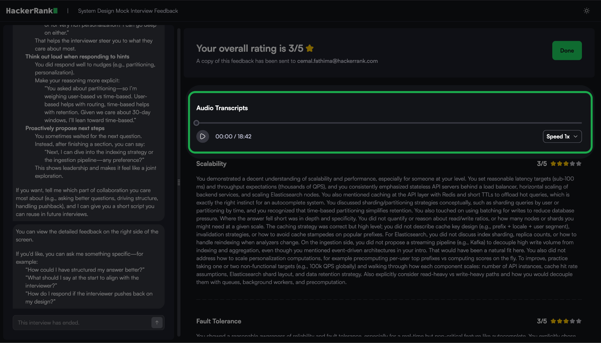 After you complete the interview, the system generates a feedback report.